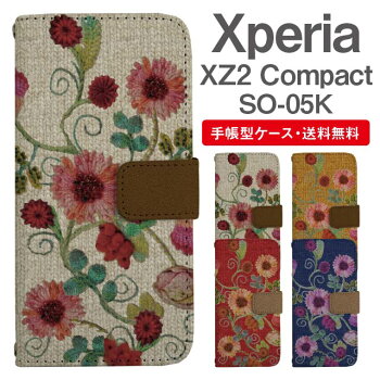 スマホケース 手帳型 Xperia XZ2 Compact スマホ カバー SO-05K エクスペリア おしゃれ エクスペリアケース Xperia XZ2 Compactケース 花柄 フラワー ニット風 刺繍風 フェイクデザイン
