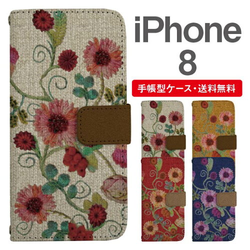スマホケース 手帳型 iPhone8 スマホ カバー アイフォン おしゃれ アイフォンケース iPhone8ケース 花柄 フラワー ニット風 刺繍風 フェイクデザイン