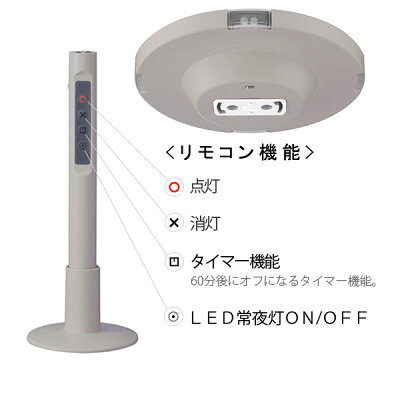 (照明は付属しません)サイズ:[送信機]直径20 高さ190 mm(スタンド/直径80 高さ50mm)[受信機]直径170 高さ33 mm材質:ABS樹脂重量:[送信機]0.09kg、[受信機]0.3kgカラー:ライトグレーブランド:ART WORK STUDIO(アートワークスタジオ)電源:[受信機]100V 50/60Hz、[送信機]単3電池×2個(別売)最大定格:AC3アンペア 蛍光灯/LED電球39W、白熱灯300W※取付可能器具の総重量:約4.6kg以内リモコン送信機可動範囲:約5m以内/赤外線発光方式60分OFFタイマー機能LED常夜灯ON/OFF機能※調光機能付きの照明器具は使用できません。
