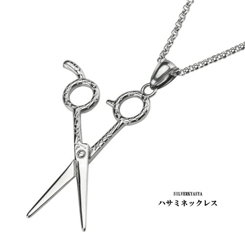 ステンレス ネックレス ハサミペンダント 鋏 はさみ ロールチェーン50cm 美容師 ネックレス お洒落