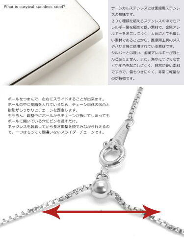 ネックレス スライドチェーン スライド レディース メンズ サージカルステンレス 316L 送料無料 スライダー式 ステンレス ネックレスチェーン あずきチェーン スライダー シンプル 長さ 調整 スライド式 シルバー ピンクゴールド ゴールド ベネチアンチェーン スライドピン式